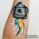 Farba szybko wysycha, zmywa się ciepłą wodą z mydłem. Może trzymać się na ciele do pierwszego kontaktu z wodą.