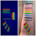 To idealne narzędzie do tworzenia zachwycających wzorów na twarzy i ciele. Dzięki precyzyjnemu połączeniu kilku intensywnych kolorów w jednym kompaktnym zestawie, umożliwia on tworzenie efektownych przejść kolorystycznych jednym pociągnięciem pędzla. Technika one stroke pozwala na szybkie i łatwe malowanie pięknych motywów.