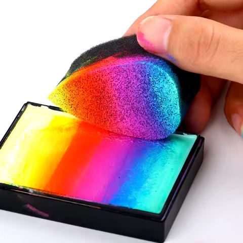 Gąbka umożliwia równomierne rozprowadzanie farby, pozwalające na stworzenie precyzyjnego makijażu.