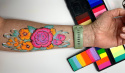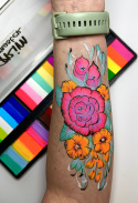 Farba szybko wysycha, się zmywa ciepłą wodą z mydłem. Może trzymać się na ciele do pierwszego kontaktu z wodą.