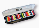 Plastikowy pojemnik z przezroczystą pokrywką. Każdy pojemnik jest zdejmowany dzięki czemu ułożenie kolorów możesz zaaranżować samodzielnie, zgodnie z własnymi upodobaniami.