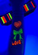 - Niektóre kolory świecą w świetle ultrafioletowym UV jak na zdjęciu.