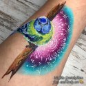 Farba szybko wysycha, zmywa się ciepłą wodą z mydłem. Może trzymać się na ciele do pierwszego kontaktu z wodą.